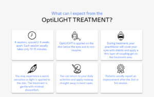 Had enough of dry, itchy eyes? Meet OptiLIGHT, a real solution for dry eye disease arising from MGD (Meibomian Gland Dysfunction), the foremost cause behind this condition. Utilizing patented OPT™ (Optimal Pulse) technology, OptiLIGHT is a light-based treatment thoughtfully designed to reach even the most delicate treatment areas, ensuring an experience that is safe, precise and gentle.